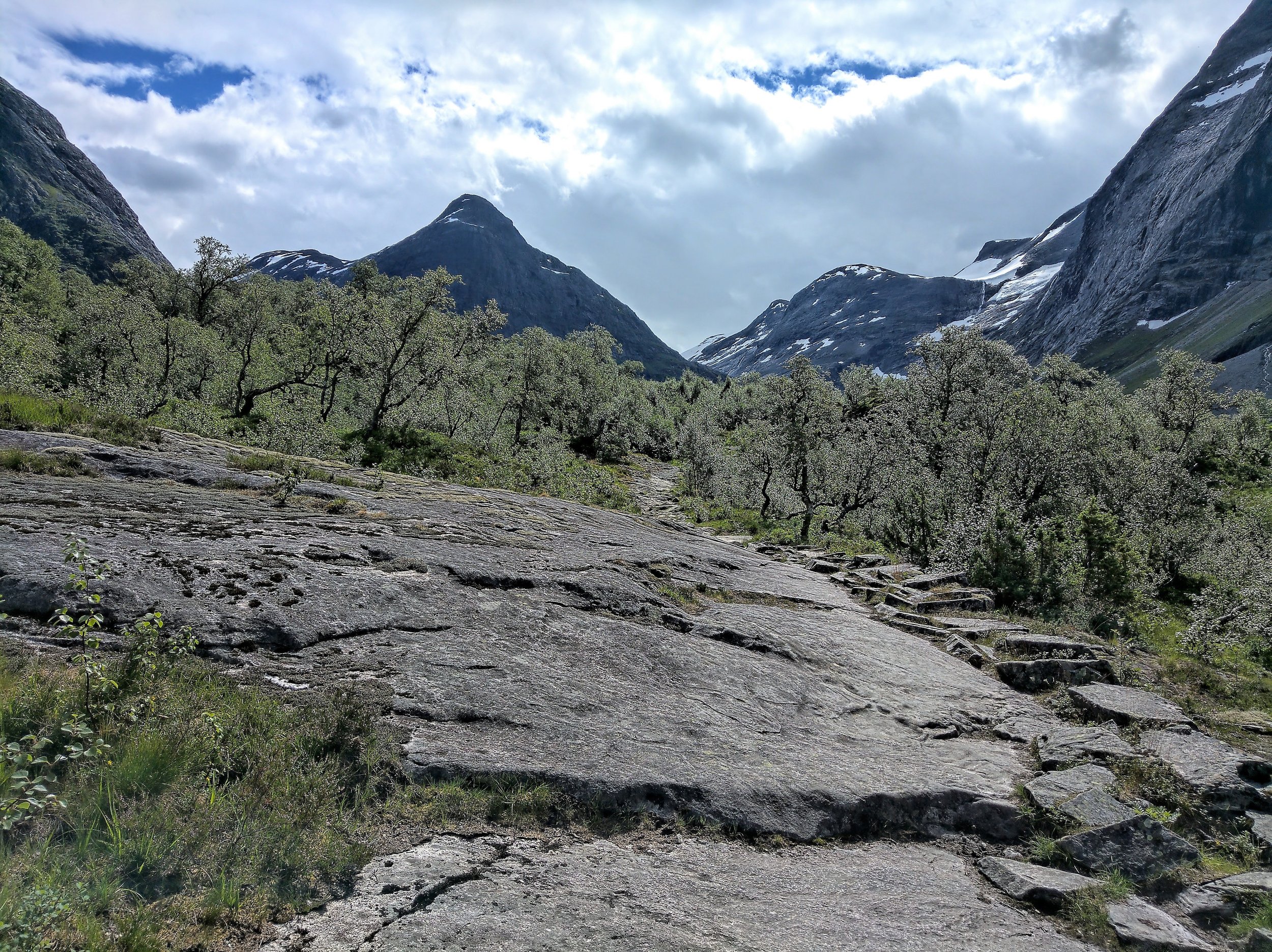 Fjellsidene er bratte, og på toppen ruvar breplatået.